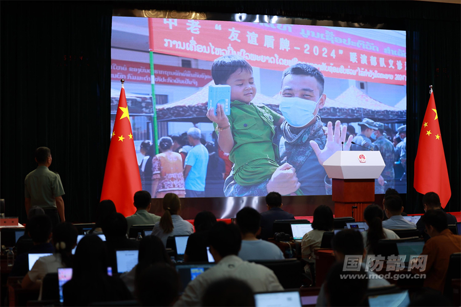 张晓刚:7月5日至18日,中老“友谊盾牌-2024”联合演习在老挝库玛丹学院训练场举行,这是两军第二次举行该系列演习。主要有以下特点:一是突出联合筹划指挥。混合编设导演部和联合指挥所,探索两军联合指挥机构设置,推演联合指挥控制流程。二是突出多军兵种协同。编组空中分队、联勤保障力量参演,优化两军多军兵种协同方法路子,提升联合任务部队行动能力。三是突出友好互动交流。中方医疗队与老方医护人员为当地民众义诊,参演官兵开展拔河、足球等文体活动,进一步加深了相互了解与友谊。