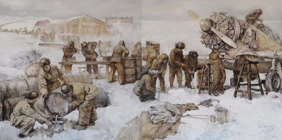 壮志凌云《艰苦奋斗创业篇·东北老航校》周末 油画 360cmx180cm 2015年