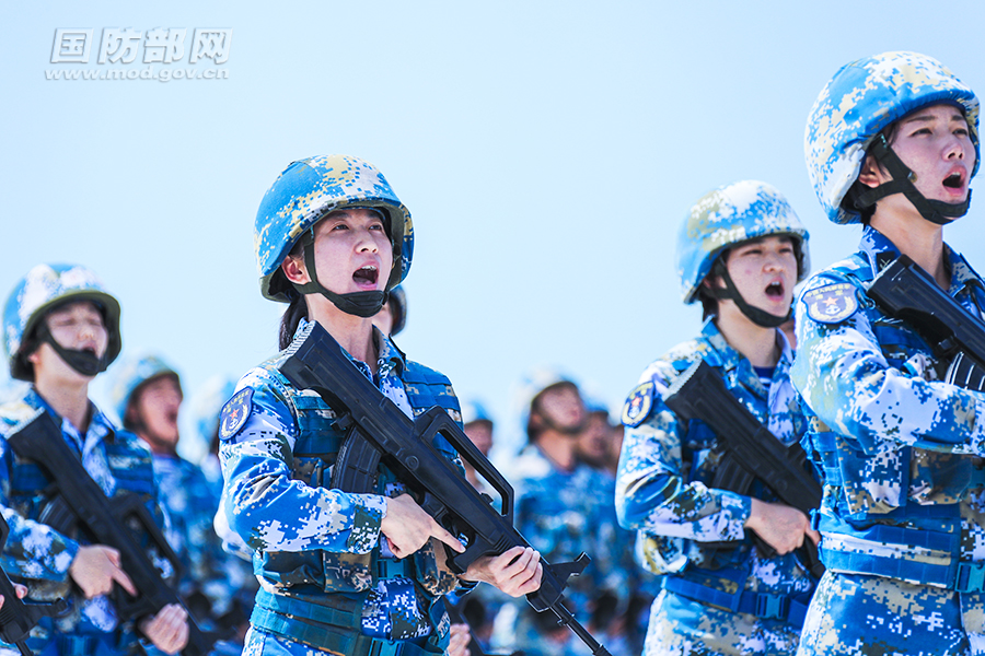 大合唱《前进吧,陆战队士兵》。孙宏韬 摄