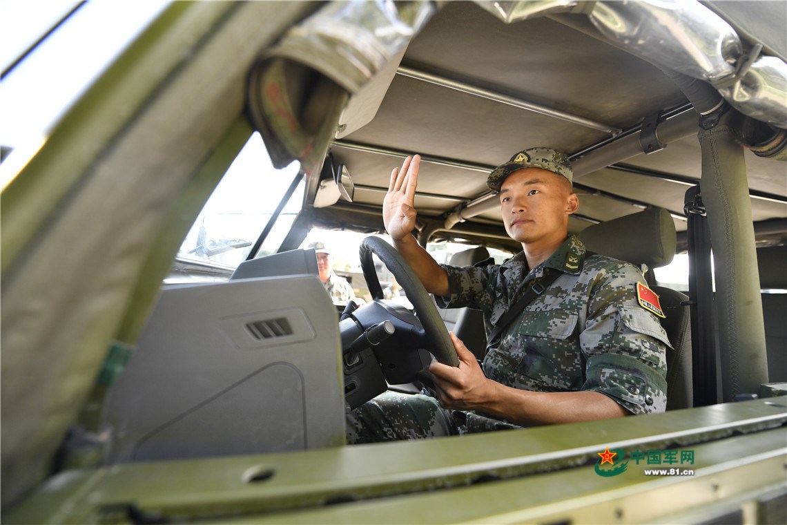 8月7日下午进行队长比拼,队长用指挥车完成复杂路段驾驶等多个课目;