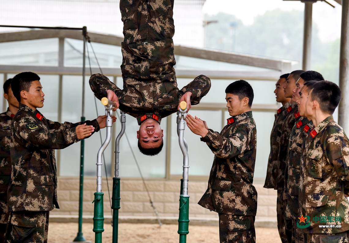 12月3日,武警泰州支队特战中队官兵在进行双杠训练。杨玉岗 摄