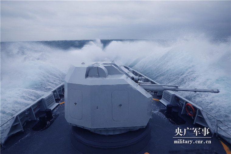 12月6日,恶劣海况有所减缓,但一阵阵涌浪袭来,时刻考验着年轻的水兵。在主炮对岸射击现场,随着指挥员下达射击口令,炮弹划过膛线,直扑目标,在海上礁石上炸开了花。