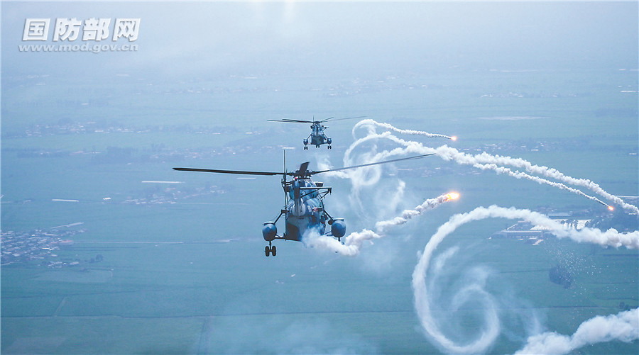 7月中旬,空降兵某旅在东北某地组织部队进行空地协同实兵实弹演练。