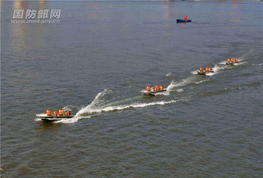 4月18日,武警重庆总队船艇支队官兵开展编队航行训练。