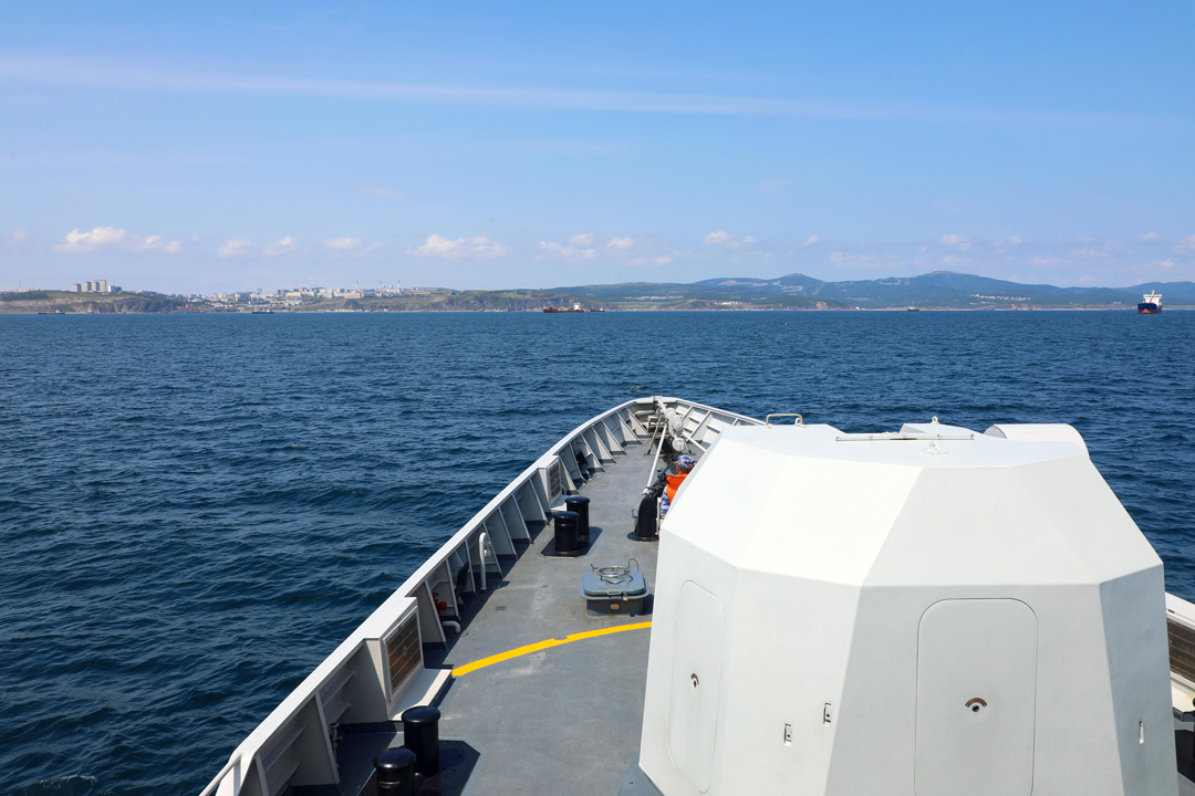 8月16日,参加“国际军事比赛-2021”的中国海军广元舰抵达俄罗斯符拉迪沃斯托克。 新华社发 张彬 摄