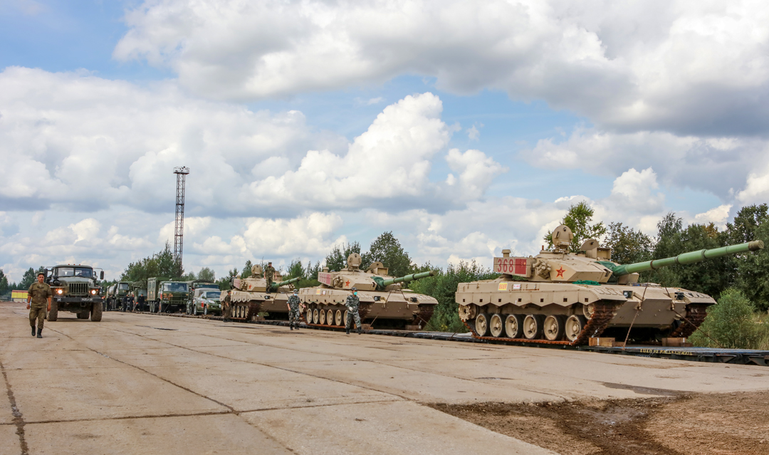 8月14日,我军参加“国际军事比赛-2021”的武器装备通过铁路军事投送方式抵达俄罗斯莫斯科。 新华社发 余小平 摄