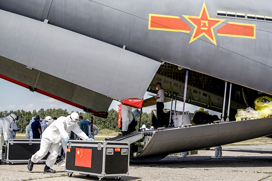 8月9日,我军参加“国际军事比赛-2021”的部分官兵搭乘运-20运输机抵达俄罗斯莫斯科后卸载物资。 新华社记者 刘艺 摄