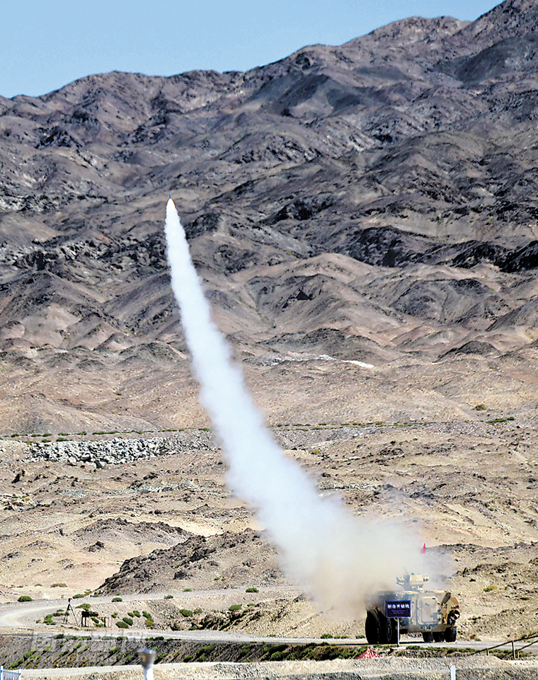 在“晴空”项目比赛中,中国参赛队陆军代表队发射导弹射击靶标。 解放军报记者 王俊 摄