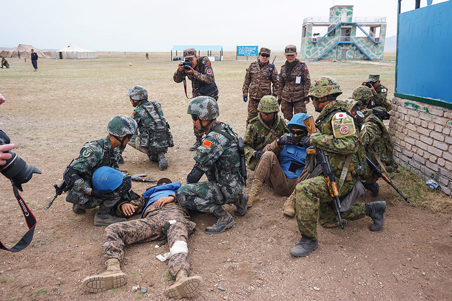 中国军队参加“可汗探索”国际维和演练。