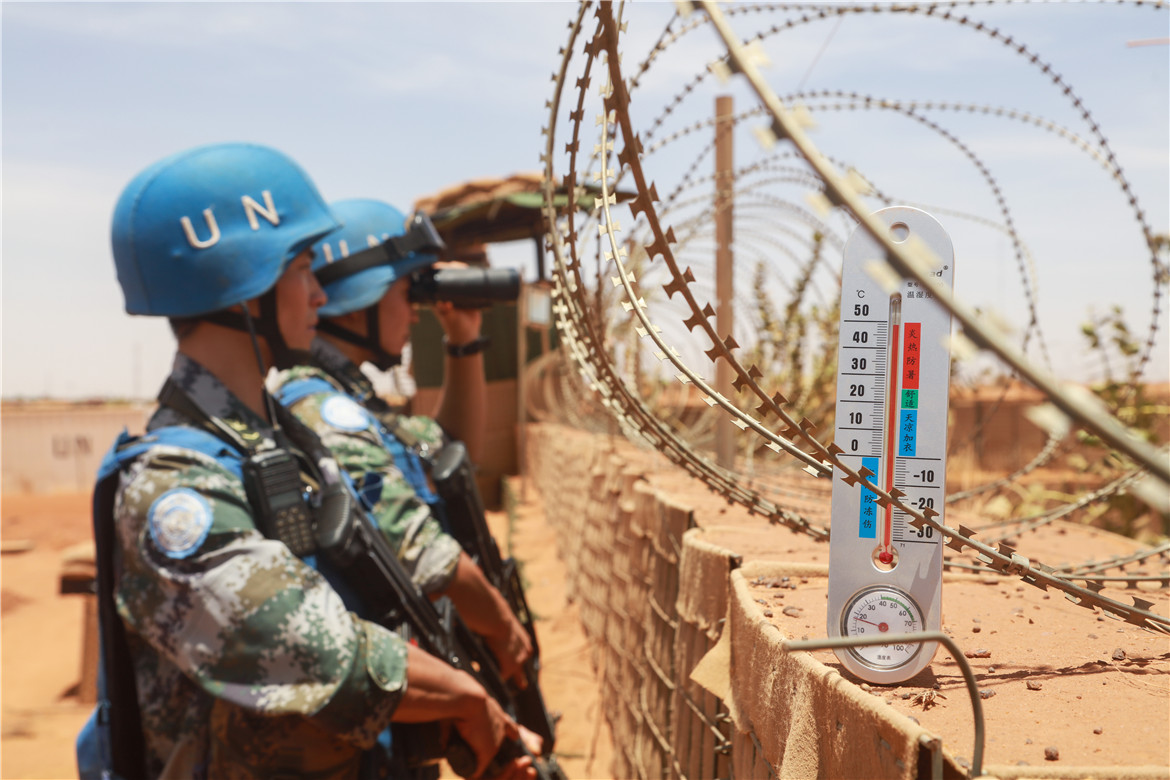 中国赴马里维和警卫分队在高温中坚守岗位。
