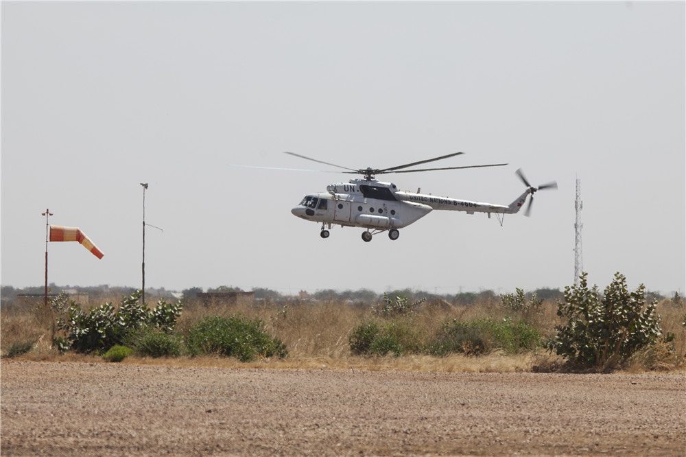 中国赴非盟-达尔富尔混合行动直升机分队飞行训练。