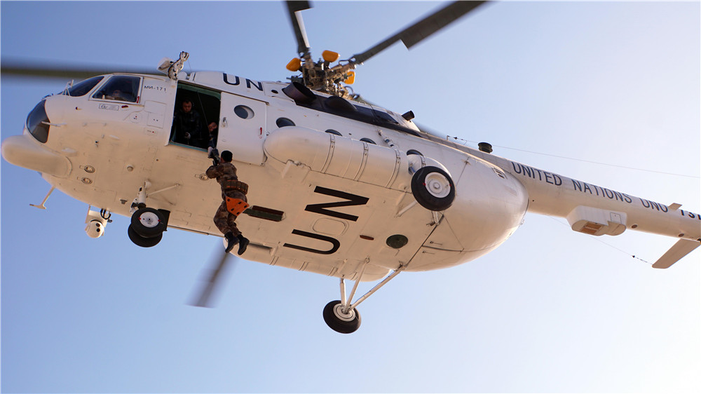 中国维和直升机分队执行任务。