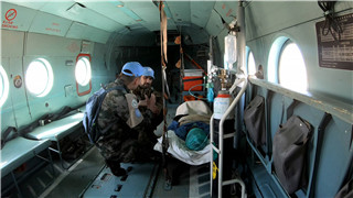 中国赴非盟-达尔富尔混合行动直升机分队紧急转运受伤的冈比亚维和警察