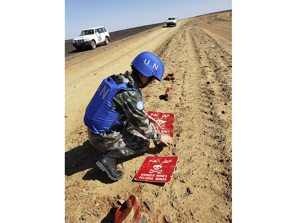 西撒哈拉特派团军事观察员巡逻途中标识雷区