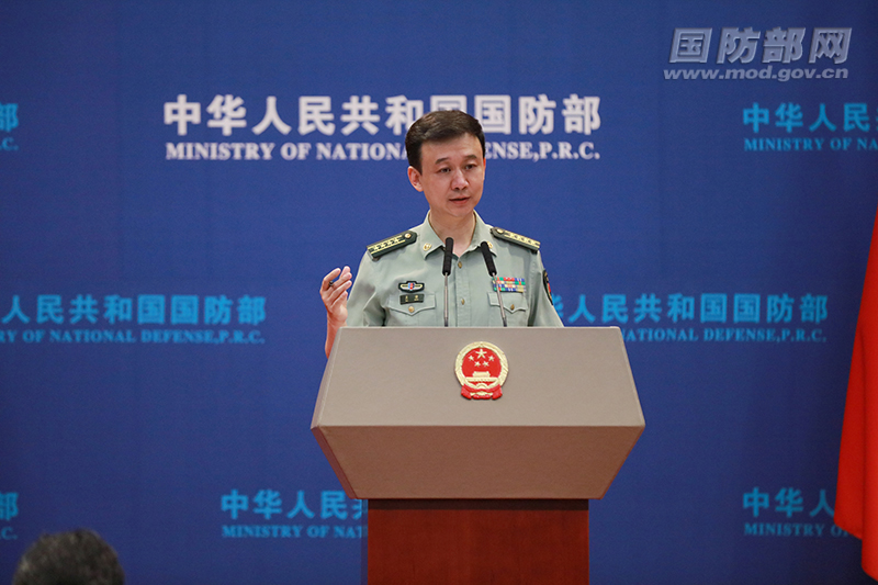 5月30日下午,国防部举行例行记者会,国防部新闻局局长、国防部新闻发言人吴谦大校答记者问。宣琦 摄