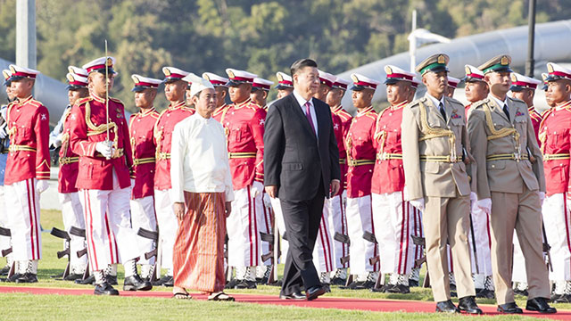 习近平出席缅甸总统温敏举行的欢迎仪式