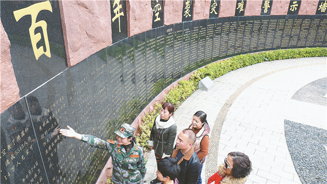 3月21日,在衡阳市虎形山人防公园,解说员为游客讲解防空知识。梁铨显 摄