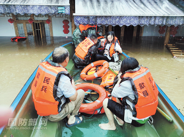 7月6日晚至7日,安徽省歙县普降暴雨,河水倒灌进城区,导致城区多地积水严重,道路无法通行。7日是高考首日,不少考生和监考老师被洪水围困无法赶往考点,焦急万分。歙县人武部立即出动民兵应急分队,驾冲锋舟、开工程车,将参加高考的师生护送至考点。当天,歙县考区原定语文、数学科目考试被迫延期。为保障考生第二天能安全到达考点、顺利参加考试,7日晚,人武部组织民兵连夜在通往两处考点的重要路段搭建起两座应急交通浮桥,并安排专人值守,随时为有需要的考生提供帮助。
