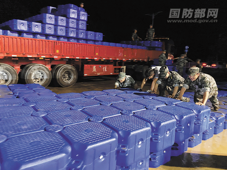 连夜搭建交通浮桥。潘汇江、李辉摄影报道