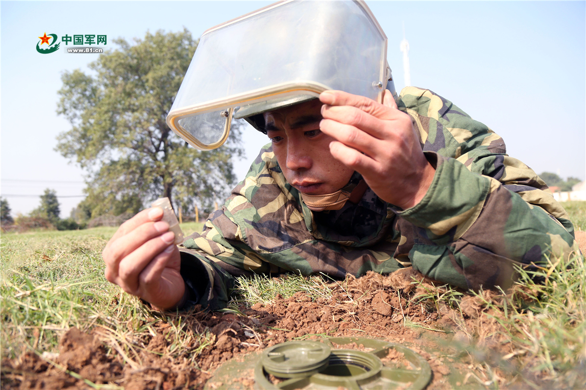 工兵埋排雷课目竞赛。陈立春 摄