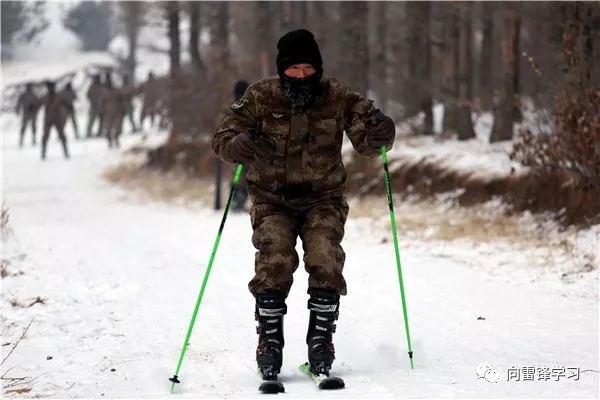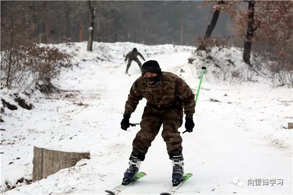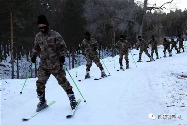 茫茫雪道上,官兵们身体保持前倾,两腿自然弯曲,反复练习着蹬滑、“八字”滑和制动等动作要领,不断克服心理上产生的恐惧。