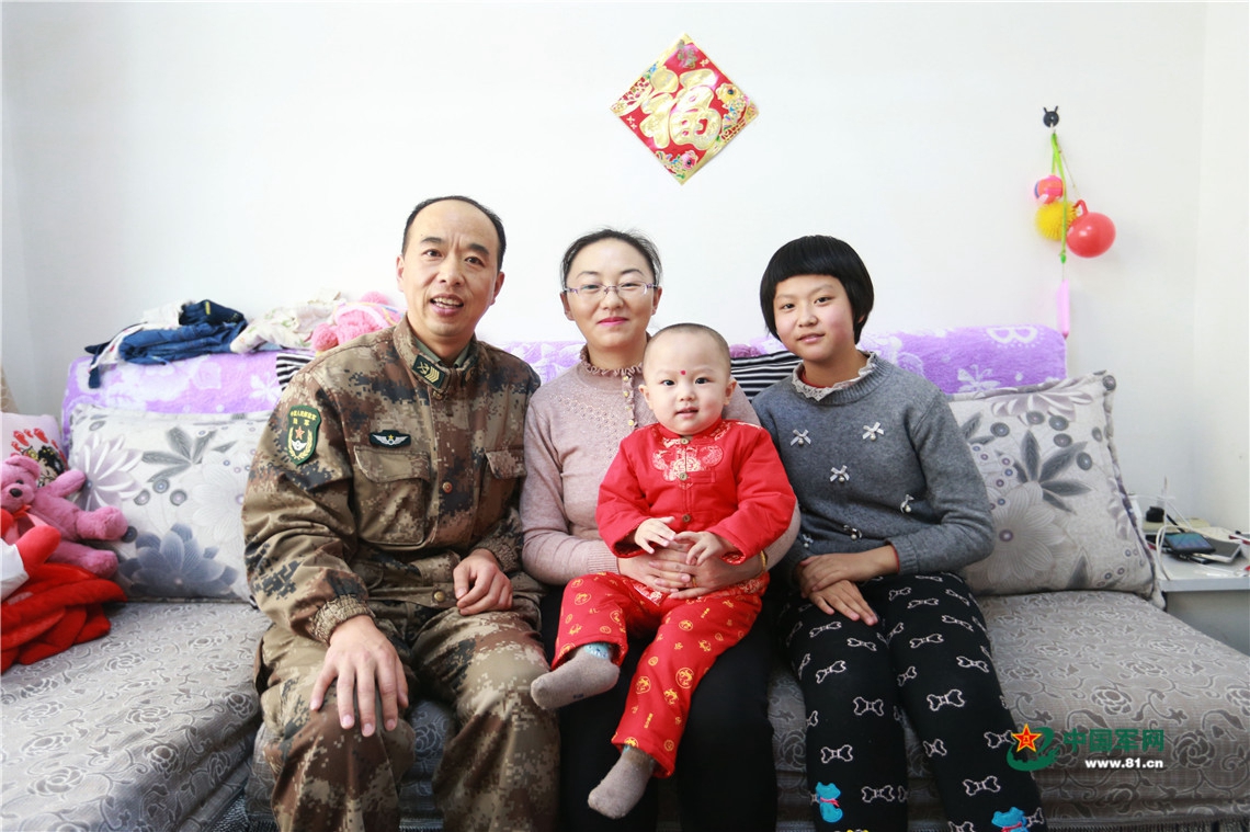 春节,陆军第76集团军某旅作战支援营工兵连一级军士长齐虎广幸福的一家。