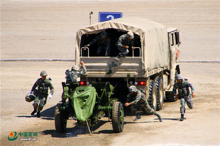 8月3日,“军械能手”榴弹炮维修理赛,中国参赛队迅速下车。张永进 摄