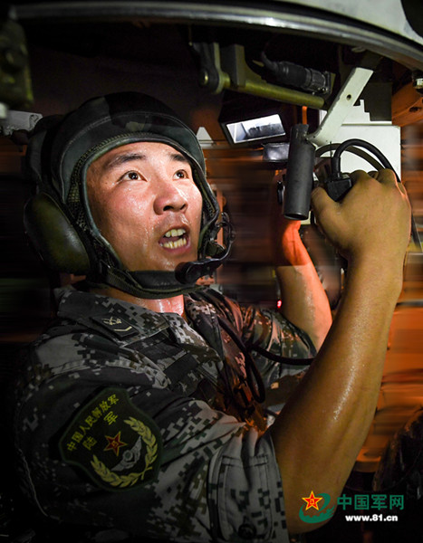 第74集团军某合成旅车长王锐在两栖装甲突击车内进行通信指挥。王锐矢志强军事业,努力做一名忠诚战士、强军标兵。彭希 摄
