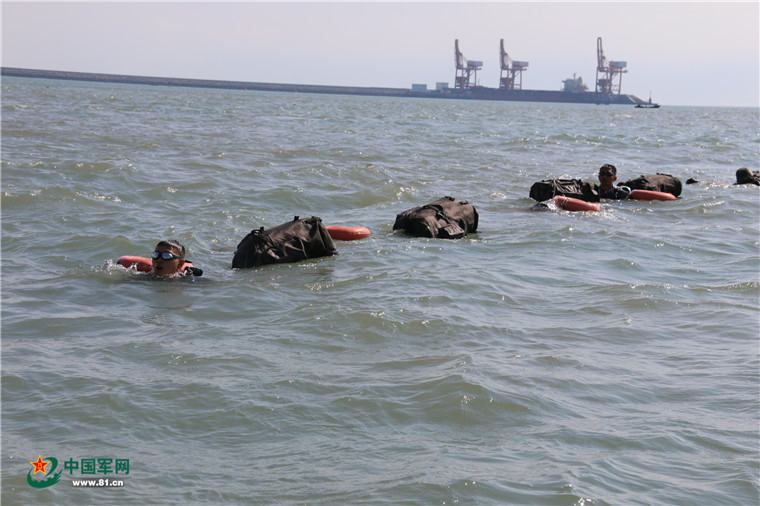 “利刃-2017·确山”基地化训练中,红军参演官兵武装泅渡,向“敌”进行水面渗透。朱中振 摄
