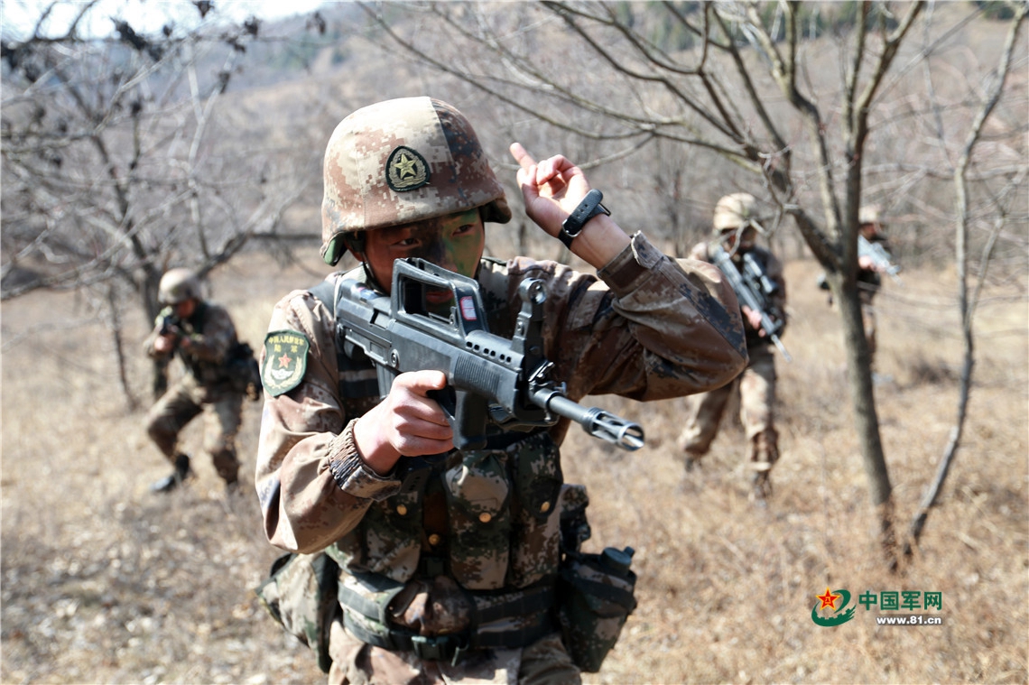 3月9日,陆军第76集团军某旅侦察营官兵在野外进行山地搜索训练。