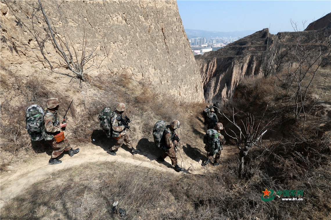 3月9日,陆军第76集团军某旅侦察营官兵在野外进行山地徒步奔袭训练。