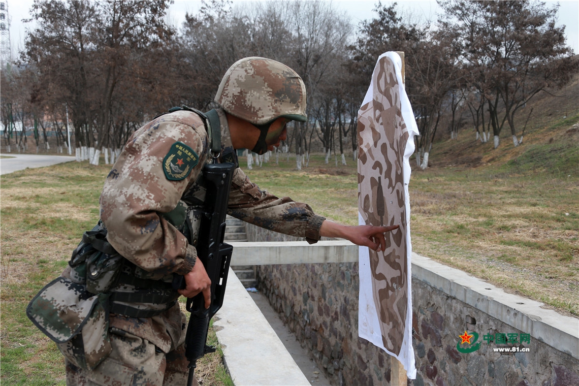3月10日,陆军第76集团军某旅侦察营官兵进行实弹射击考核。这是参加训练的战士查看自己的射击靶标。
