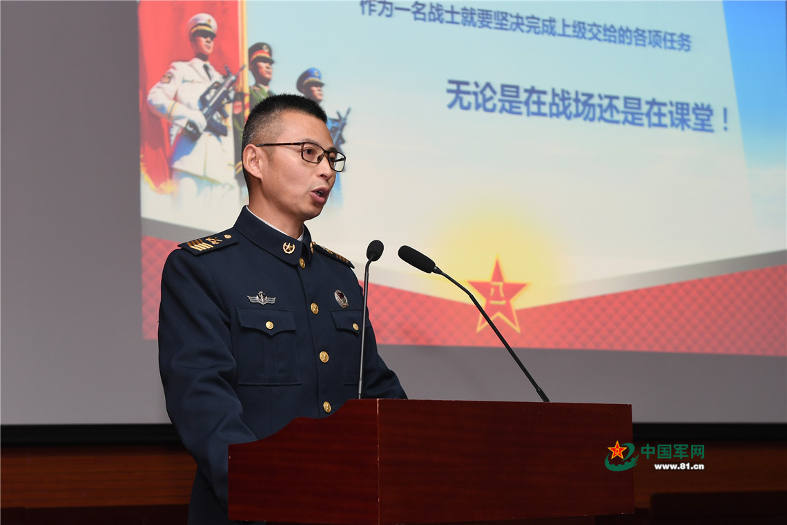 朱秋军参加“兵王故事会”演讲,讲述自己的军旅故事。