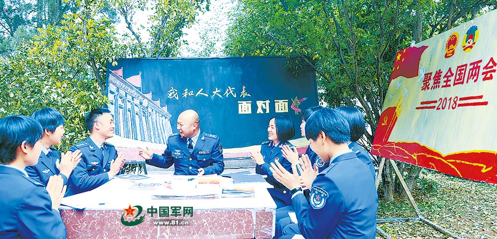 南部战区空军某基地通过集中学习讨论、分组交流体会等方式,围绕“广播里说什么、报纸上写什么、电视中看什么、大家从中学什么”,让大家谈认识感悟、亮观点思想,帮助官兵进一步领会两会精神实质,深化学习效果。(解放军报特约通讯员 张恒平 特约记者 范以书摄影报道)