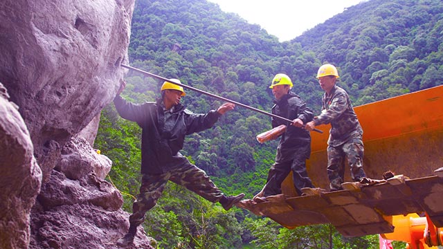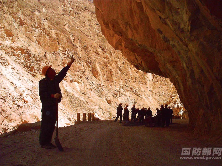 川藏线“老虎嘴”怒江沟,官兵正在清理刚塌下的堆积物。