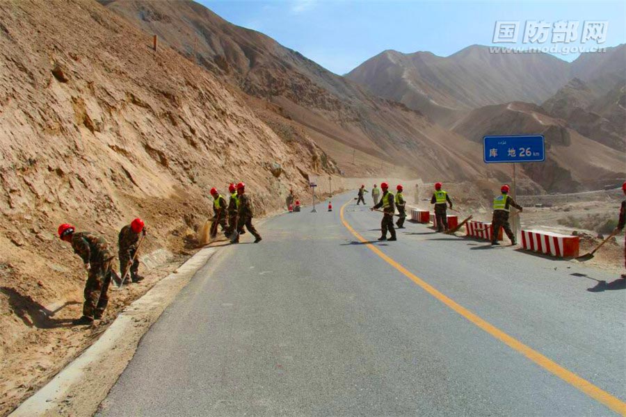 新藏线官兵正养护施工。