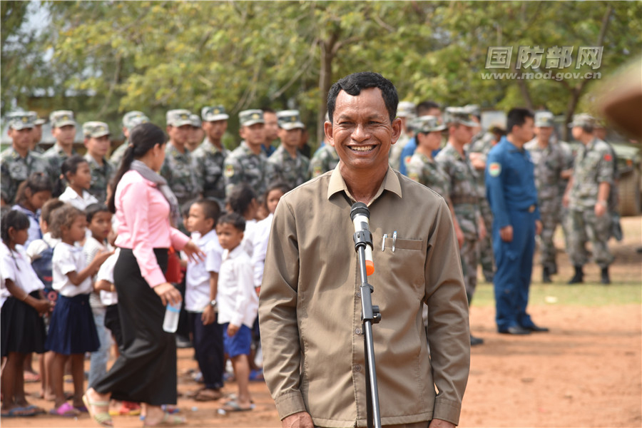 “金龙-2018”中柬人道主义援助活动现场,当地村民代表进行发言。牛利 摄