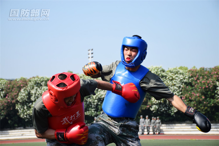 格斗对抗训练锤炼警卫兵在无武器装备条件下,如何战胜对手的能力。图为警卫兵正在进行格斗比武训练。