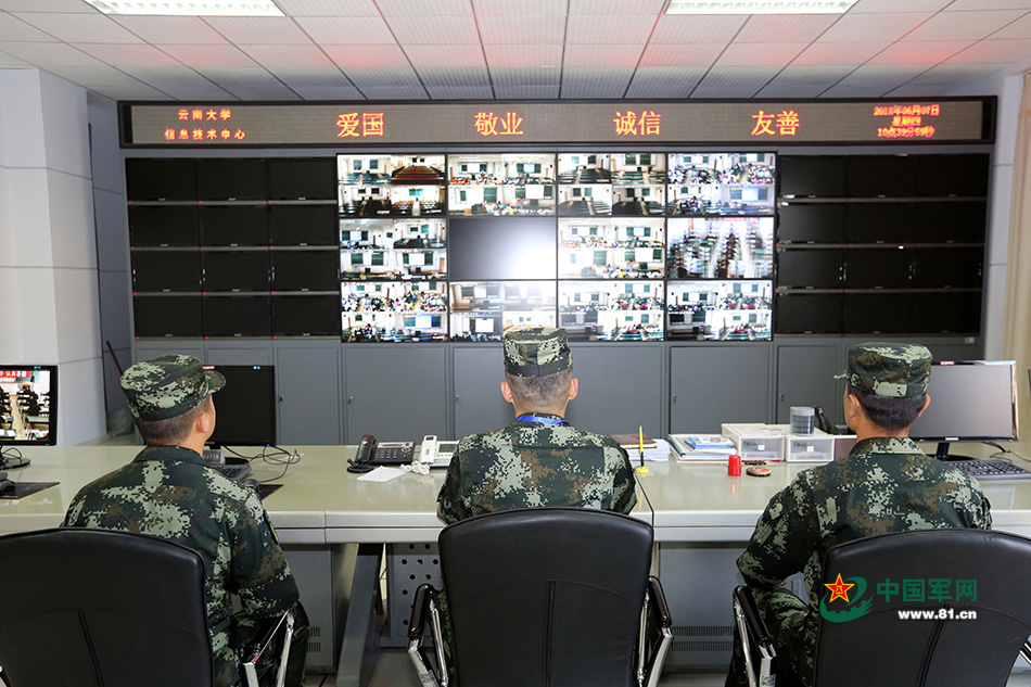 监考工作人员在监控室内全时监控着考场里每个考生的一举一动。
