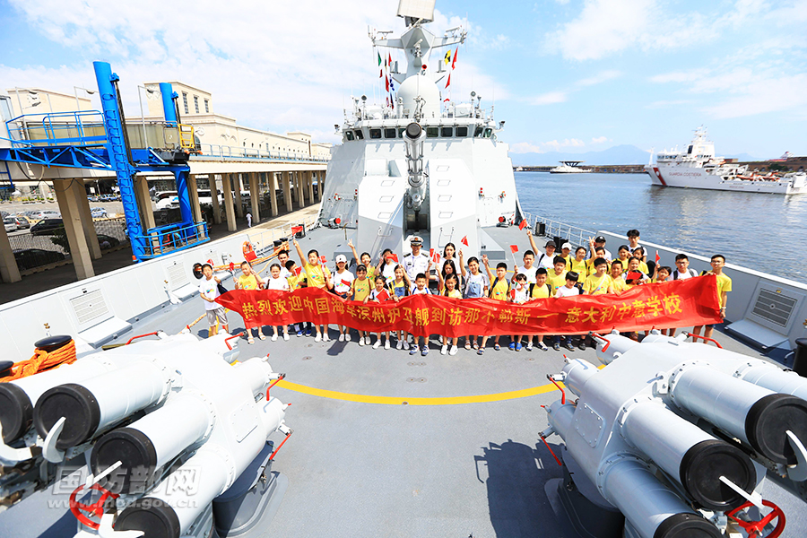 意大利中意学校在滨州舰上合影。韩林 摄
