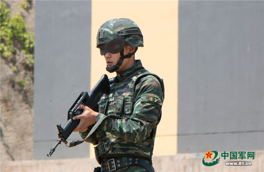 记忆指向射击前特战队员蒙上眼睛。丁杨 摄