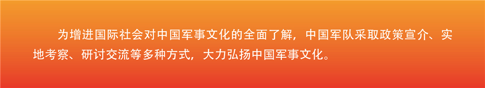 文明因多样而交流,因交流而互鉴,因互鉴而发展。在博大精深的中华优秀传统文化中,军事文化耀眼璀璨,承载着中华文明开拓发展的辉煌历史,凝聚着中华民族气壮山河的英雄气概,浓缩着中国人民勇于创造的高超智慧。国际军事合作深深植根于中华优秀传统文化、革命文化、中国特色社会主义文化,讲好中国军队故事,传播中国军队声音,展示中国军队形象,推动中外军事文化交流互鉴。