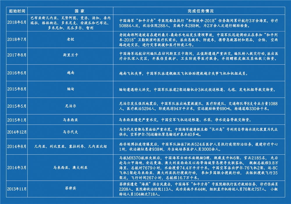 2012年以来中国军队主要国际灾难救援和人道主义援助行动。
