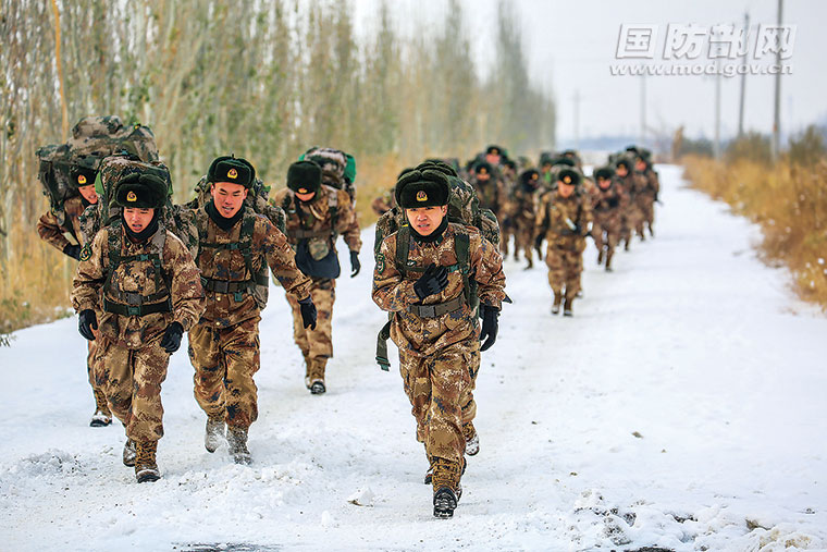11月25日,新疆军区某团将官兵拉至野外生疏地域,开展20公里高强度战斗体能训练。