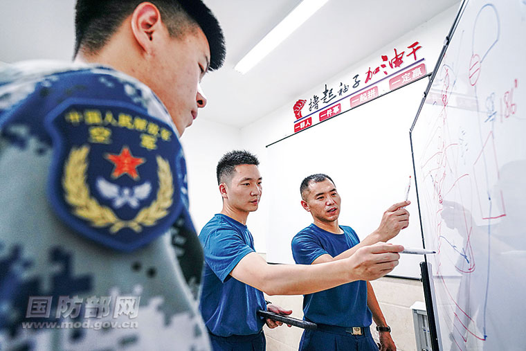 第二批突击编队进入目标空域后,迅速压坡度、瞄准、发射……返航后,飞行员立即总结复盘,针对问题进行整改,力求每次训练都能提升技术战术水平。