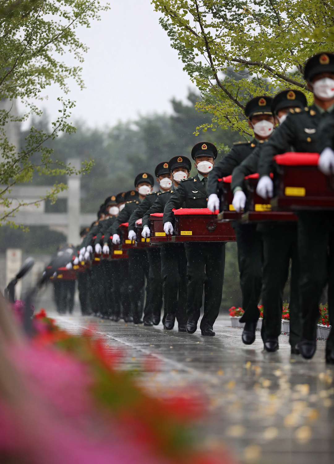 9月16日,志愿军烈士的遗骸抵达沈阳抗美援朝烈士陵园。新华社记者 姚剑锋 摄