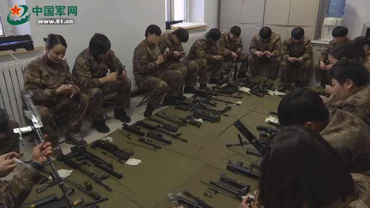 手上沾满枪油,皱起鼻子一闻,一时难以习惯。“晚上吃饭都不敢用手抓馒头,不然咬一口满嘴煤油味”,大家纷纷伸手比谁手上的枪油多。枪支保养在她们看来,似乎是一天中最放松的时刻,所有人围坐在一起,边擦边聊,“战场”上虎虎生威的特战女兵,下午讲起笑话才露出另一副面孔。