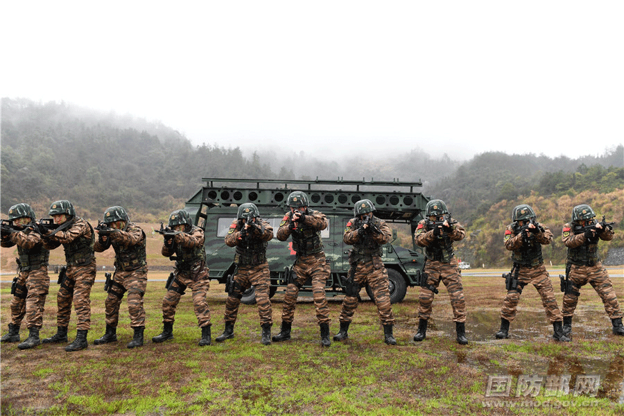 武警江西省总队特战队员利用攀登车进行突击训练。