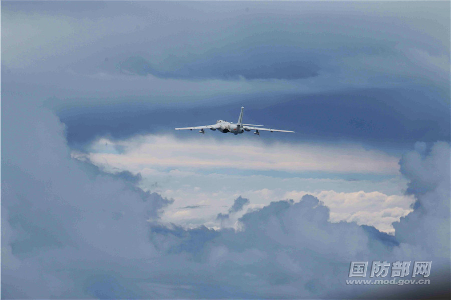 空军航空兵某团轰-6K战机穿越“暴风眼”。吴岳鹏 摄