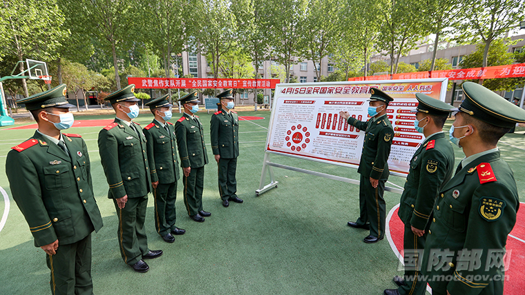 4月13日,在第七个“全民国家安全教育日”即将到来之际,武警河南总队焦作支队聚焦宣传主题,创新活动形式,广泛宣传总体国家安全观知识,增强官兵维护国家安全意识。该支队采取“线上+线下”方式,通过线下讲堂、宣传展板和新媒体等渠道,学习《中华人民共和国国家安全法》《中华人民共和国反恐怖主义法》《中华人民共和国反间谍法》等法律法规;开展安全辩论赛、研讨交流会,引导官兵充分认清维护国家安全的极端重要性和现实紧迫性,强化国家安全观念,树牢“国家安全、人人有责”意识,时刻绷紧安全之弦。